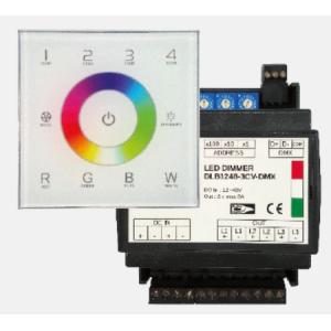 4-channel dmx control system to control low voltage led fixtures and strips. dmx512 bus control with non-dissipative sensor with master or slave function controlled by dmx control unit; complete with the following controls: dimmer, dim to warm, dynamic white, rgb and rgbw; with fade function when switching on and off and protection system against overvoltage and overtemperature. wall-mounted touch control unit with control of up to 4 independent zones with 7 pre-set programs, color control and dimmer control.